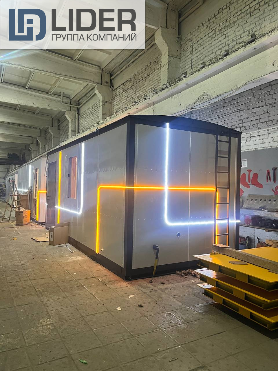 Вагон-дома получились интересные: аккуратная светодиодная подсветка делает их заметнее и современнее. Небольшой штрих, который придает модулям характер и выделяет их среди стандартных решений.